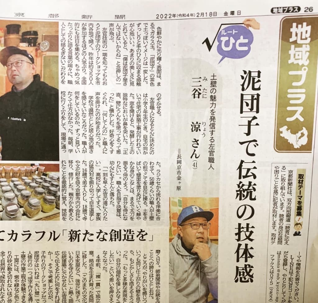 京都新聞 朝刊『左官職人直伝、壁塗り体験』